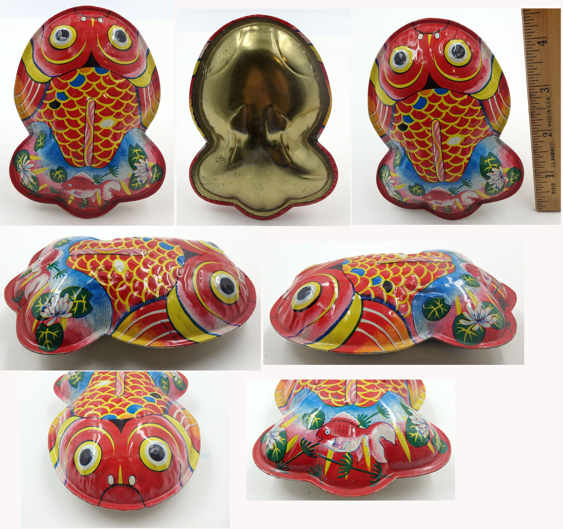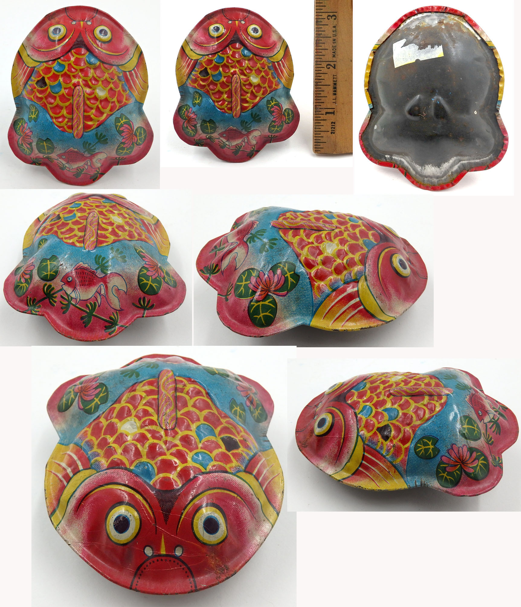 Japanese Tin Fish Rattle 4.5 inches (11.4 cm) long VG This large fish rattle has essentially the same litho