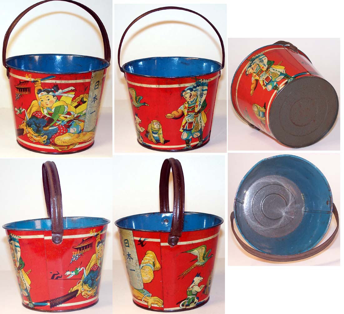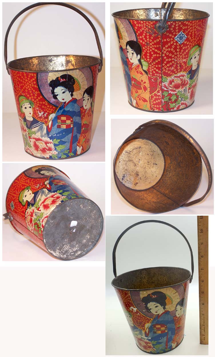 adds 3.25 inches ( 8.2 cm) VG This colorful tin Japanese pail is probably Pre-War