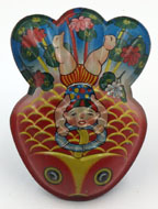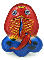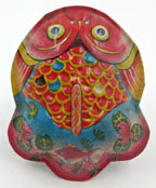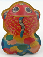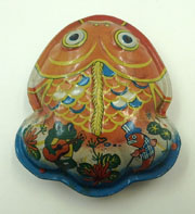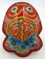 Japanese Tin Fish Rattle 4 inches (10 cm) long EX This large tin fish rattle has a different set of fish on