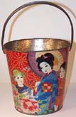 Japanese Tin Sand Pail - Geisha with Children 6.5 inches ( 16.5 cm ) tall ,top diameter is 6.5