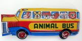 the bus while a tiger, dog, bear, rabbit and lion are